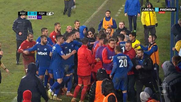 Meč između Radnika i Radničkog iz Kragujevca je obeležio incident u sudijskoj nadoknadi kada je došlo do žestokog okršaja između igrača.