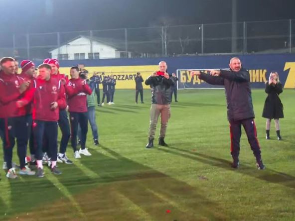 Veče kasnije, crveno-bele su u Ljutice Bgodana dočekali navijači na treningu, bakljama, transparentima i skandiranjem, koje je posebno bilo upućeno tvorcu ovog uspeha - Dejanu Stankoviću.