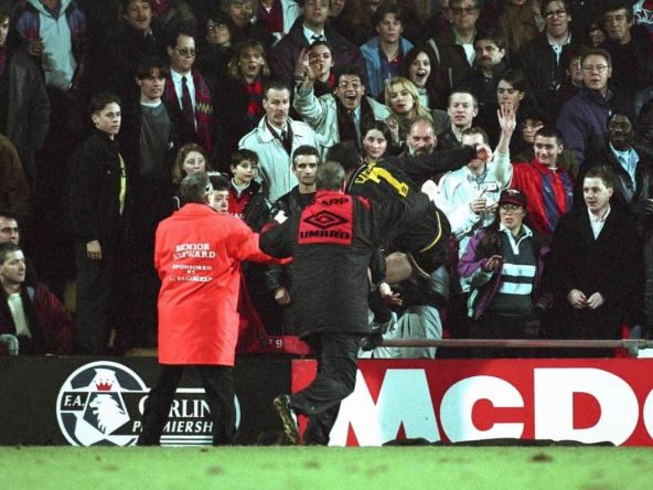 Na meču Mančester junajteda i Kristal Palasa Erik Kantona je prvo dobio crveni karton i morao je da napusti teren pošto je šutnuo defanzivca Ričarda Šoa. Engleski defanzivac je tokom celog meča čuvao Kantonu i to je razgnevilo Francuza.