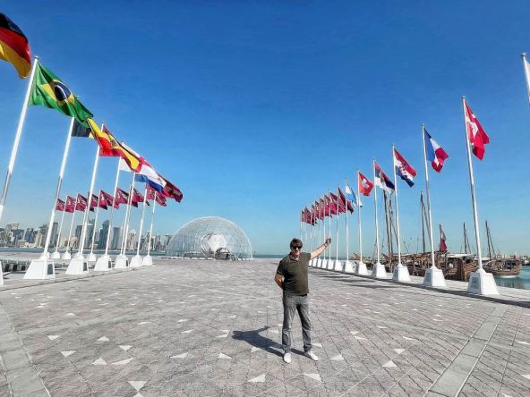 S obzirom da se naš tim već kvalifikovao na Mundijal na veikom platou na obali zaliva u Dohi između ostalih je istaknuta i srpska trobojka!
