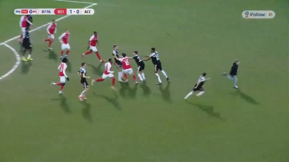 Reč je o engleskom fudbalu, odnosno tamošnjoj Ligi 1 - trećem rangu takmičenja. Igrali su Roteram i Akrington, a domaći tim je na spektakularan način stigao do sva tri boda (1:0).