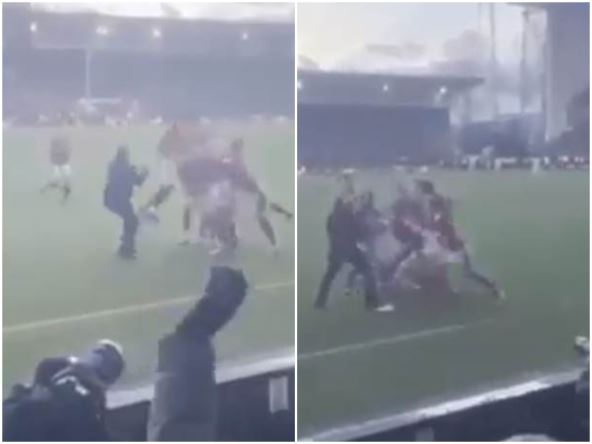 On je nekoliko puta zamahnuo, možda čak i zakačio nekog od igrača u crvenim dresovima, a obezbeđenje na stadionu presporo je reagovalo nakon ovog incidenta. Ništa nas to ne čudi, pa prethodnih dana smo videli kako čovek prekida milanski derbi i kako navijač izvodi penal u trećem rangu engleskog fudbala.