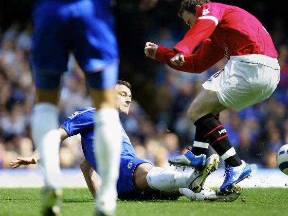 Runi je na toj utakmici uspeo u nameri da povredi Terija u jednom duelu (na slici), posle kojeg je štoper Čelsija ostao da leži na zemlji dok nije stigla pomoć fizioterapeuta. Nakon tog Runijevog starta, Terijeva štunca je bila natopljena krvlju.