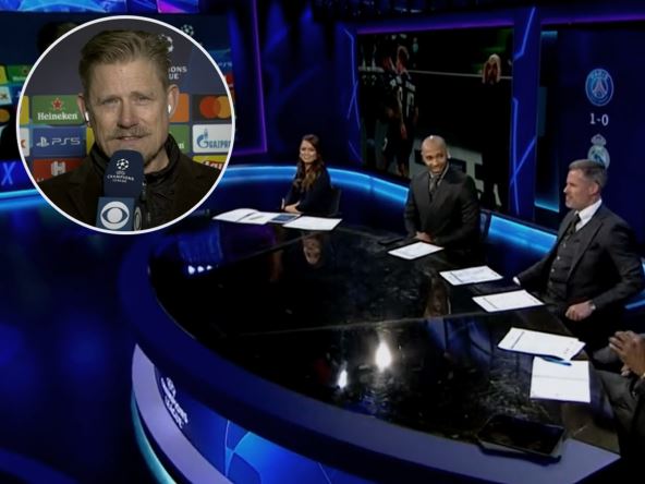 Sa jedne od utakmica Lige šampiona izveštavao je legendarni golman Mančester junajteda Piter Šmajhel, a kako su u studiji bili bivši igrači Mančester sitija, Liverpula i Arsenala, bilo je za očekivati da će biti nekih "peckanja".