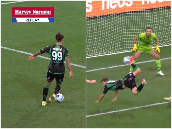 Australijski fudbaler izveo je "Škorpiona", telo mu je padalo unapred, a nogom koja je ostala u vazduhu uspeo je da zahvati loptu. Tako je Prijovićevo dodavanje pretvorio u asistenciju, a pitanje je da li ćemo do kraja godine videti lepši gol u svetskom fudbalu.