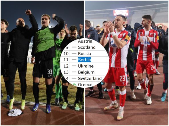 Srbija sada ima 1,275 bodova više od Ukrajine, koja nema više klubova u Evropi, pa u zavisnosti od uspeha Zvezde i Partizana, koji će odigrati još najmanje četiri evropska meča ovog proleća, to može samo da raste.