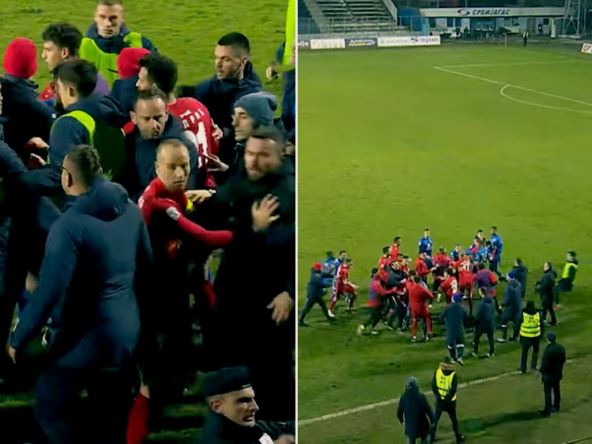 Svi igrači oba tima su uleteli na teren u tom momentu i nastao je pravi haos, a onda su na teren počeli da uleću i predmeti, pa je tako u jednom momentu uletela i stolica na teren!