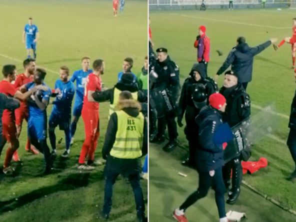 Taman kada je delovalo da se situacija smirila ponovo je nekoliko igrača pored aut linije ušlo u sukobe, a opet je sve to morao da smiruje Lalatović koji je burno reagovao na ovakav razvoj situacije.