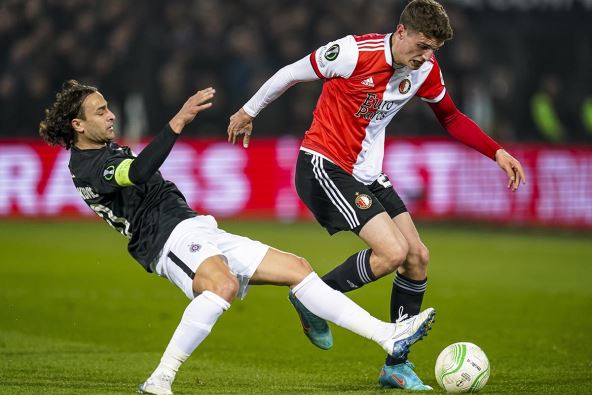 Do sada 2:1 u kornerima za crno-bele, a posle centaršuta Miloša Jojića, defanzivci Fejnorda odlično skaču i sklanjaju bilo kakvu potencijalnu opasnost.
