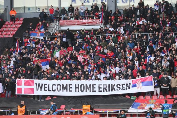 Fudbalska reprezentacije Srbije gostuje Danskoj na Parkenu koji je rasprodat prvi put posle 17 godina, a navijači domaćeg tima dočekali su svog junaka. Kristijan Eriksen, momak koji je kolabirao tokom meča protiv Finske na Evropskom prvenstvu, prvi put nakon povratka fudbalu igra u svojoj zemlji.