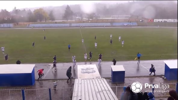 U trenucima kada se Milan Ilić pripremao da izvede aut na polovini Grafičara u gradu na istoku Srbije počela je da pada jaka kiša. Fudbaleri su odmah pobegli sa terena, a vratili su se tek nekoliko minuta kasnije.