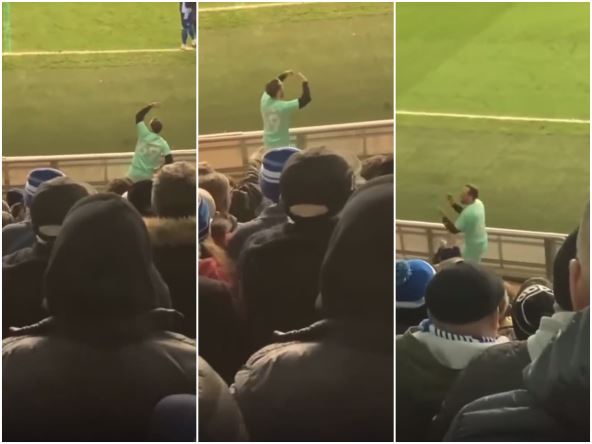 Dok se Amosu ukazivala pomoć, on se uredno zagrevao pored terena. Prvo malo istezanja, pa konsultacije oko toga da li je izmena potrebna, a onda i malo trčkaranja pored aut linije, što je bila odlična zanimacija za navijače. Za sada nepoznati navijač nekadašnjeg učesnika Premijer lige skrneuo je pažnju na sebe, a na internetu se pojavio još jedan snimak njega u dresu.