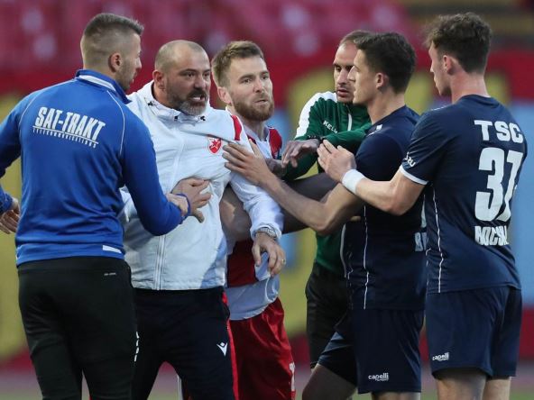 Veoma je napeto na utakmici Crvena zvezda - TSC u četvrtfinalu Kupa Srbije. U jednom trenutku prvog dela meča povredu je doživeo vezista crveno-belih Gelor Kanga i morao je da izađe iz igre, a nedugo posle toga umalo je izbila tuča kraj aut-linije.