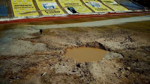 Sada su se pojavile i nove fotografije razrušenog stadiona, nekada zvanog "Jurij Gagarin", a na kojem se tamo gde je nekad bio teren - danas nalazi krater!
