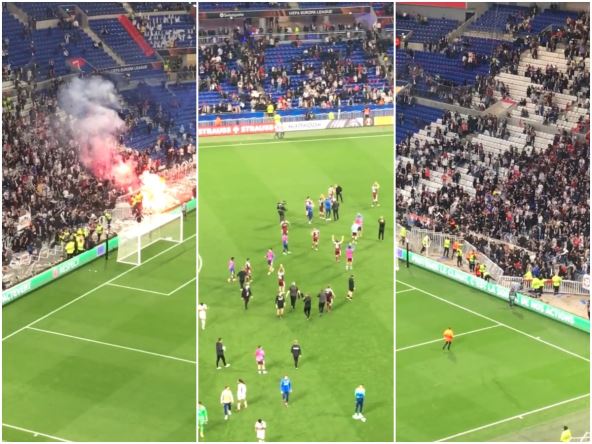 Navijači francuskog kluba su napravili bakljadu nakon meča, uništili ogradu oko terena i čak pokušali i da se probiju na teren. Na sreću, to im nije uspelo pa su incidenti ostali samo na tribinama, ali scene su i ovako bile dovoljno ružne.