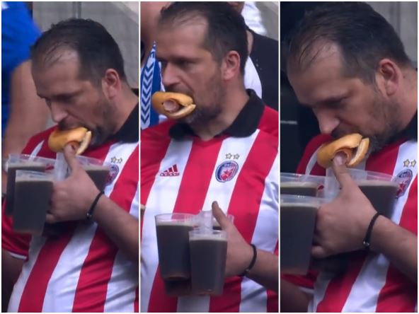 Snimak koji se pre nekoliko godina prvi put pojavio u javnosti ponovo je hit. Navijač u dresu Crvene zvezde gledao je jednu utakmicu Šalkea u Bundesligi, a kamere su ga uhvatile zbog njegove neverovatne moći - čovek je uhvaćen u kadar dok drži osam piva i usput jede hot dog!