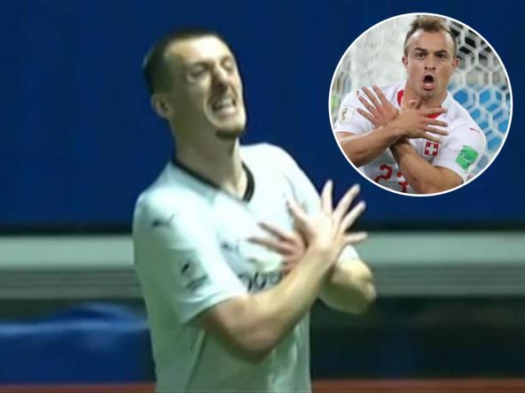 On je na svom debiju u azijskoj Ligi šampiona zatresao mrežu i potom pogodak proslavio onako kako su Džaka i Šaćiri to učinili protiv Srbije na Svetskom prvenstvu 2018. - pokazao je simbol "velike Albanije", sa ukrštenim rukama aludirajući na njihovog dvoglavog orla.