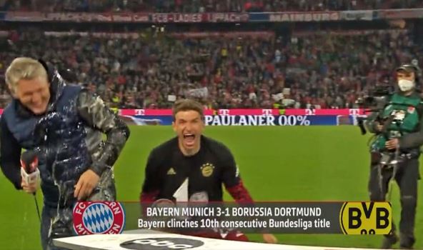 Fudbaleri Bajerna iz Minhena proslavili su osvajanje 10. uzastopne titule u Bundesligi, a kako to obično biva u Nemačkoj - završilo se ogromnim količinama piva. Fudbaleri giganta iz Bavarske slavili su na terenu, gde se pilo nemačko pivo, a bilo je i "zalivanja" saigrača.