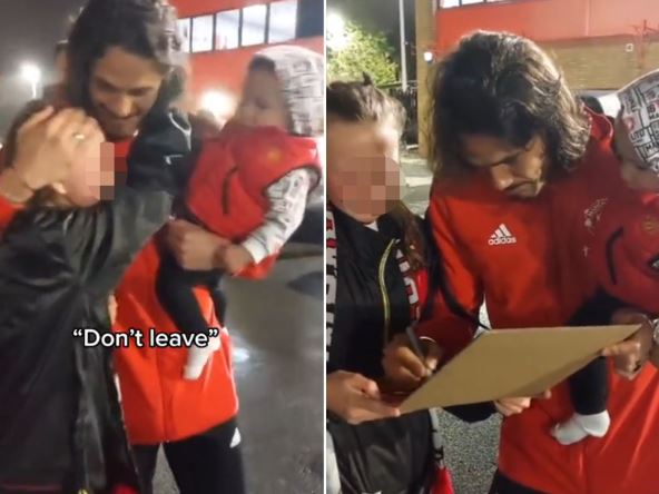 Nakon utakmice ispred stadiona Kavanija je pronašla jedna navijačica koja ga obožava! Nije mogla da sakrije suze kada ga je videla i molila ga je da ostane u klubu!
