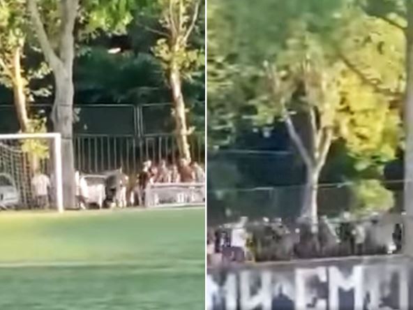 Policija je brzo reagovala, bilo je i uhapšenih sa obe strane, a sada se pojavio novi snimak velike navijačke tuče u kojoj su korišćeni kaiševi i baklje. Pogledajte kako je to izgledalo iz ovog ugla: