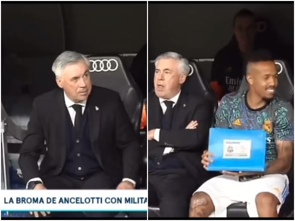 U poluozbiljnom tonu, Anćeloti mu je predložio da bude pomoćnik tokom te utakmice, a Militao je odmah potražio svesku sa akcijama kako bi mogao da prati taktičke zamisli svog šefa. Njih dvojica su nastavili da razgovaraju, ali je Anćeloti bio oprezan pa je usta prekrio rukom kako neko ne bi pročitao šta smeraju.