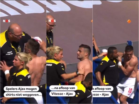 Normalan gest koji se viđa svakog vikenda u svim fudbalskim ligama sveta, ali je iz nepoznatog razloga nastao problem u Holandiji. Kada je Tadić skinuo dres i pokušao da doda jednom navijaču, obezbeđenje je burno reagovalo i počelo da gura kapitena Ajaksa.