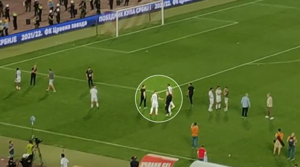Čim je "prozvan" prvi fudbaler Zvezde koji treba da dobije medalju - kapiten Milan Borjan - igrači Partizana krenuli su ka tunelu u nameri da ne gledaju slavlje domaćih fudbalera. Zbog toga su se odmah sa tribina čuli zvižduci navijača Crvene zvezde, a poleteli su i pojedini predmeti sa severa.
