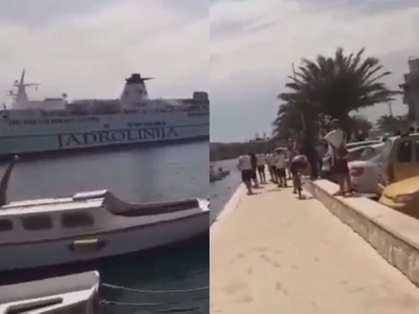 Okupljeni navijači posmatrali su sa obale ulazak broda u luku, a direktno ka njemu bile su upućeni su stihovi navijačke pesme.