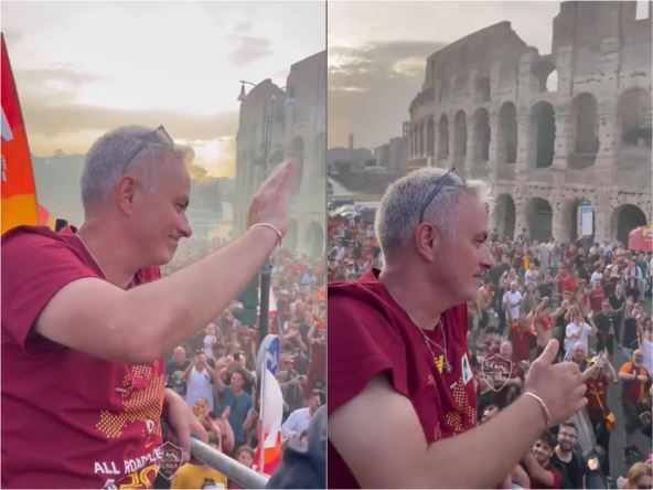 Murinjo je bio među najveselijima kada je otvoreni autobus Rome "krstario" pokraj Koloseuma. Mahao je navijačima i pokazivao na grb kluba koji mu je u srcu.