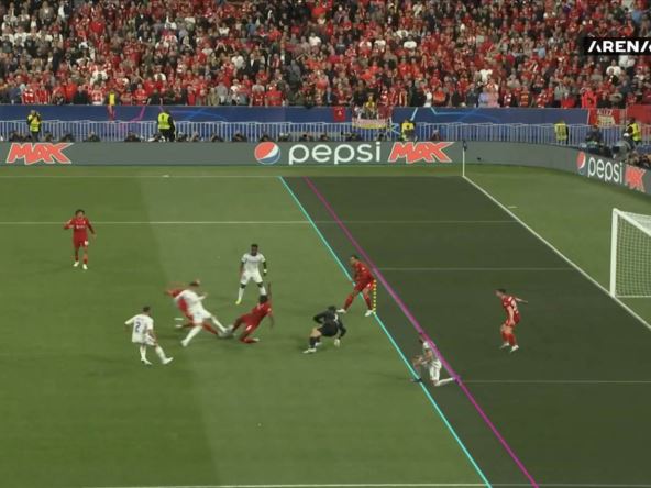 Naime, pre nego što je lopta došla do Benzeme Valverde je uklizao, ona se odbila od Fabinja i Konatea i došla do Karima. Međutim, prema objašnjenju sudije to je ofsajd jer je fudbaleri Liverpula nisu sa namerom vratili već ih je slučajno pogodila.