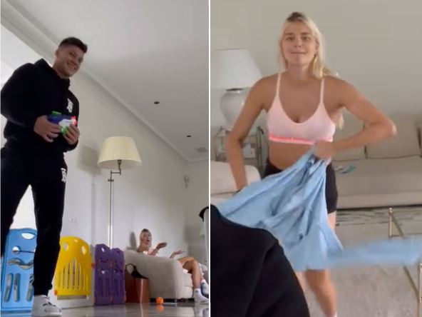 Sofija je na svoj TikTok profil podelila snimak na kome se vidi kako je Luka iznenadio dok je čitala nešto na telefonu, pošto joj se prišunjao i "pucao" na nju iz pištolja na vodu.