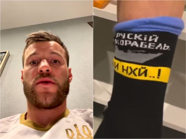 Nakon poslednje utakmice u Ligi nacija, protiv Irske (1:1), Jarmolenko je navijačima predstavio svoje nove čarape na kojima se nalazi jasna poruka vojsci Rusije koja je pre četiri meseca počela vojnu invaziju na Ukrajinu.