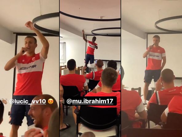 Crvena zvezda polako privodi pripreme u Sloveniji kraju. Čeka je još jedan kontrolni meč, a pre toga su fudbaleri napravili šou, pokazali su šta umeju sa mikrofonom u ruci.
