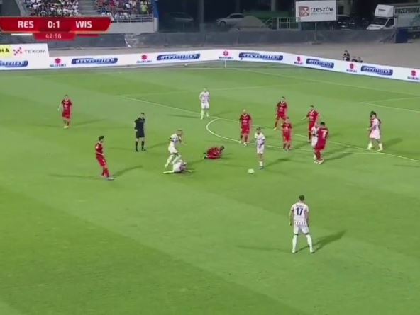 Neverovatna scena dogodila se na meču drugog ranga u Poljskoj. Vezni fudbaler Resovije Bartoš Kvesijen napravio je neverovatan gaf, pošto je klizećim startom mogao ozbiljno da povredi svog saigrača. Iako u okolini nije bilo fudbalera protivničkog tima, Poljak je uklizao i "odneo" Rubena Hugenhuta koji se pripremao za udarac ka golu.