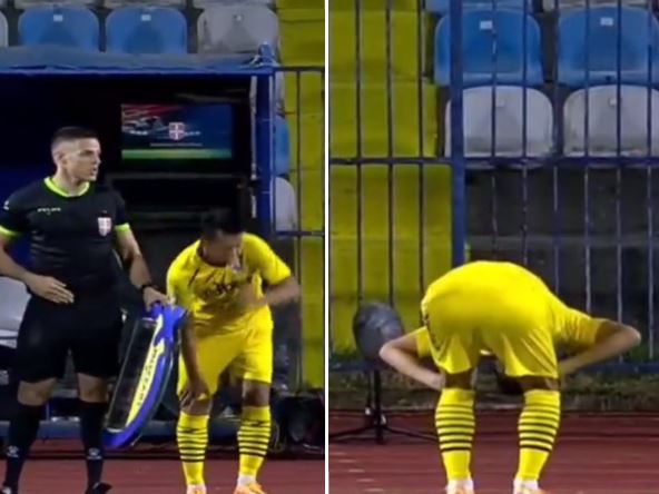 Momak koji je nekoliko sezona proveo u crnogorskom fudbalu doživeo je jednu od najbizarnijih superligaških povreda. Arihito Sentoku dobio je nezgodan udarac od četvrtog sudije dok se pripremao da uđe u igru!