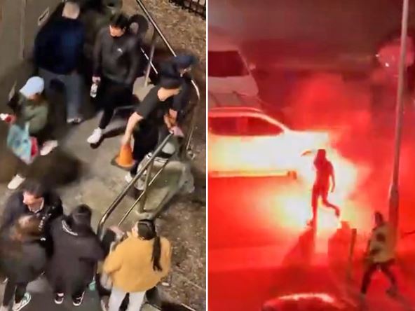 Ne zna se zbog čega je izbio sukob, ali se na snimcima koji su izašli u javnost jasno vidi da se navijači međusobno gađaju kamenicama i da bacaju saobraćajne znake jedni na druge, a osim toga letele su i baklje! Nekoliko navijača nosilo je baklje koje je bacalo na svoje protivnike.