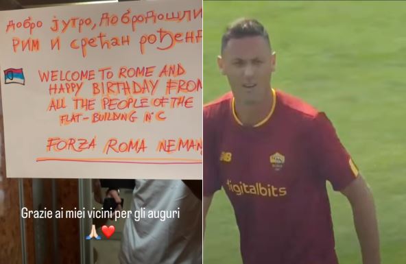 Matić je objavio fotografiju iz lifta, na kojoj je napisana poruka na srpskom jeziku – ćirilicom. "Dobro jutro, dobrodošli u Rim i srećan rođendan". Isto su mu poručili na engleskom jeziku, uz potpis – komšije iz zgrade. "Napred Roma", pisalo je na italijanskom.