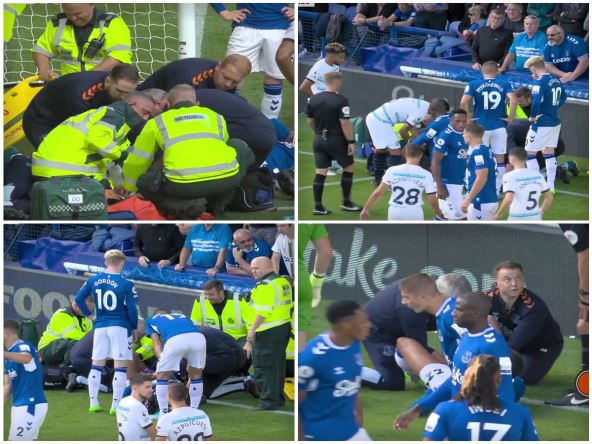 Na samom startu meča u osmom minutu golman Evertona Džordan Pikford je loše dodao loptu i ona mu je vraćena, a iako je izašla sa granica terena on je probao da je vrati u igru. Kai Haverc je došao do nje, a kada mu je Ben Godfri uklizao teško se povredio!