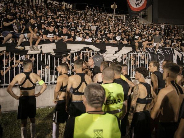 Fudbaleri Partizana su nakon ispadanja iz kvalifikacija za Ligu Evrope završili "na raportu" ispred južne tribine. Od njih je traženo da skandiraju protiv uprave, što nisu učinili, a zatim su se - nakon predaje dresova - zaputili ka svlačionici. Fudbaleri crno-belih danas su saopštenjem demantovali da je bilo prinudnog skidanja dresova, ali saga nije završena na terenu.