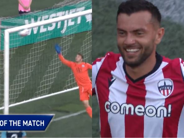 Pogodak koji je postignut u Kanadi liči na legendarni potez Roberta Karlosa. Foto: Twitter/CPLsoccer/printscreen