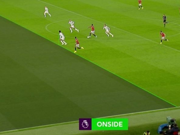 "Obično VAR slika ofsajda pokazuje i linije napadača i odbrambenog igrača, ali kad je igrač u dozvoljenoj poziciji zahvaljujući stopi tolerancije, kompjuter automatski pokaže samo liniju defanzivca, koja je u Premijer ligi zelene boje. Nisu prikazane obe linije, jer bi bile jedna na drugoj. Rašford je bio u marginalnom ofsajdu, ali je zahvaljujući ovom pravilu bio u dozvoljenoj poziciji."