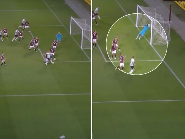 Nije se štedeo u ovoj situaciji Milinković-Savić, praktično je loptu "skinuo" sa gol-linije, a potom je nažalost pokazao da je povređen. Srećom, nakon intervencije lekara vratio se među stative.