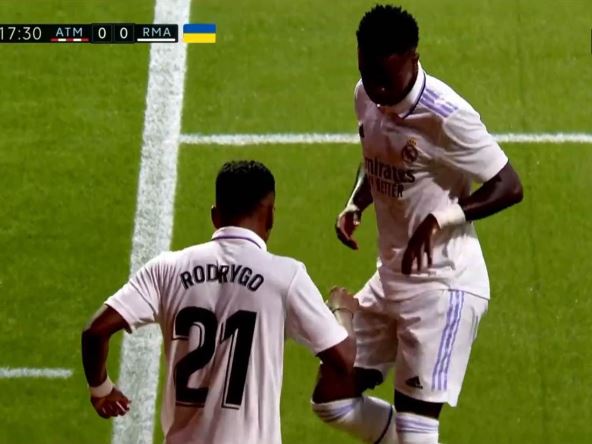 A onda je njegov sunarodnik Rodrigo u 18. minutu rešio da baš tako proslavi pogodak. Čuameni ga je sjajno pronašao, ovaj fenomenalno završio lepu akciju i doveo Real u vođstvo, da bi odmah zatim zajedno sa Vinisijusom plesao u inat svim navijačima Atletika. Mogli su se videti i brojni predmeti koji su poleteli s tribina u njihovom pravcu. Pogledajte kako je to izgledalo: