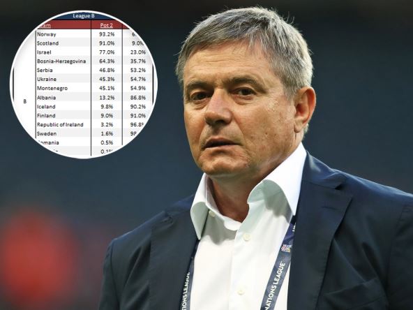 Ali jedna druga stvar je još važnija. Nakon pobede Škotske, Srbiji su porasle šanse za ulazak u drugi šešir pred kvalifikacije za EURO 2024 na 46.8%, pa je sada skoro identična verovatnoća da ćemo ipak završiti u trećem šeširu (53.2%). Srbija bi sa dve pobede u narednih pet dana sigurno stigla do drugog šešira i, izvesno, do A divizije Lige nacija.