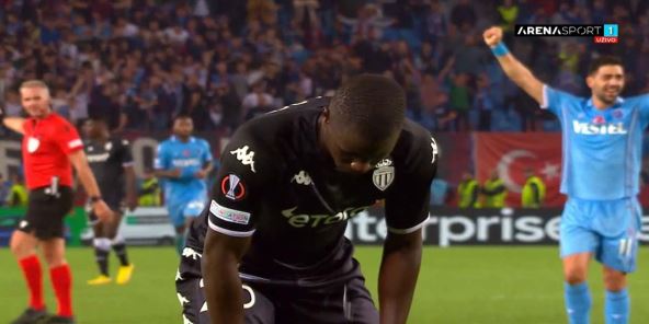 Autogol Monaka protiv Trabzona Foto: ArenaSport 1 / printscreen