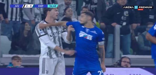 Juventus je pobedio, dao četiri gola Empoliju (4:0), Dušan Vlahović se nije upisao u strelce, a bio je vidno nervozan tokom utakmice. Da li zbog toga što nije postigao gol ili nešto drugo, ali je u jednom momentu izgubio živce i malo je falilo da dođe do tuče na terenu usred meča. Igrao se 57. minut kada je došlo do klinča između njega i kapitena protivničkog tima Filipa Bandinelija. U tom momentu je Srbin čekao centaršut, došlo je do guranja u kaznenom prostoru, Dušan se okrenuo ka sudiji i to je pokazivao, tada mu je Bandineli prišao, dotakao ga po vrati u došlo je do klinča. Srećom, izbegnut je fizički obračun.