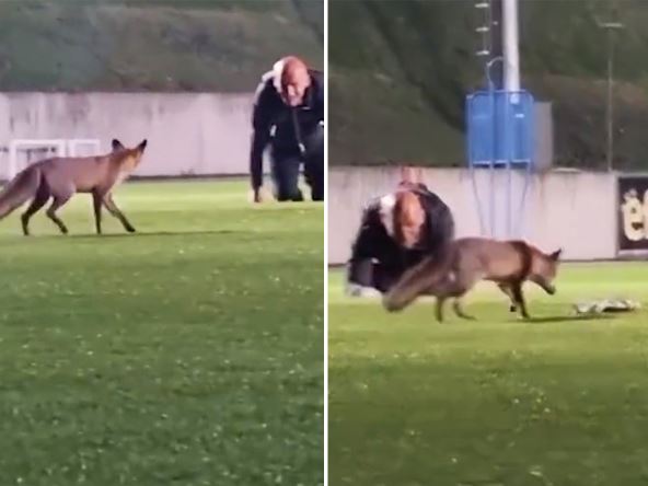 Kretala se lisica po travnatoj površini, gledala je šta sve ima na terenu i tražila svoj "plen" i na kraju ga je našla. U vidu golmanskih rukavica koje su se nalazile na zemlji. Jedan od trenera pokušao je da je primiri, legao je i on na zemlju, ali ga je ona nadmudrila. Uzela je rukavice i otrčala van terena. Uspela je da ulovi svoj "plen" i da pobegne, a trener je ostao da se smeje. Navijači su takođe bili oduševljeni i spremni za šalu, pa su tako neki pisali da će "golman morati da brani bez jedne rukavice".