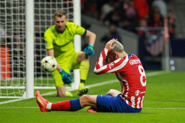 Atletiko je ispao iz Lige šampiona remijem protiv Bajer Leverkuzena (2:2) i to nakon što mu je dosuđen penal nakon završetka utakmice. Da, dobro ste pročitali - sudija Klemen Turpan odsvirao je kraj meča, pa je onda na sugestiju VAR sobe pogledao snimak sporne situacije u kaznenom prostoru i pokazao na belu tačku. Šansu da donese Atletiku pobedu imao je Janik Karasko, ali je u 99. minutu nije iskoristio. Golman mu je odbranio, a onda je Saul naleteo na odbijenu loptu i pogodio prečku. Neverovatno kako nije pao gol!