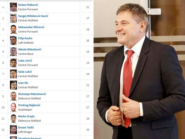 Na toj listi je među top 10 bio i jedan srpski fudbaler pošto se sa procenjenom cenom od 85.000.000 evra na devetom mestu našao Dušan Vlahović, a saznali smo i da Dragan Stojković Piksi može da računa na deset igrača vrednijih od 10.000.000 evra.
