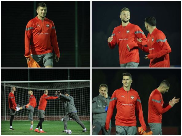 Luka Jović je posle serije odlčnih igara za Fiorentinu bio na terenu i videli smo ga nasmejanog u opremi nacionalnog tima, a na momente je Aleksandar Mitrović aplaudirao svojim saigračima i bio je jako zadovoljan kako trening prolazi.